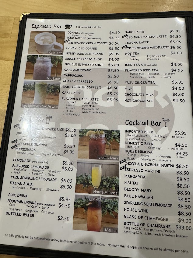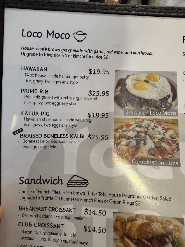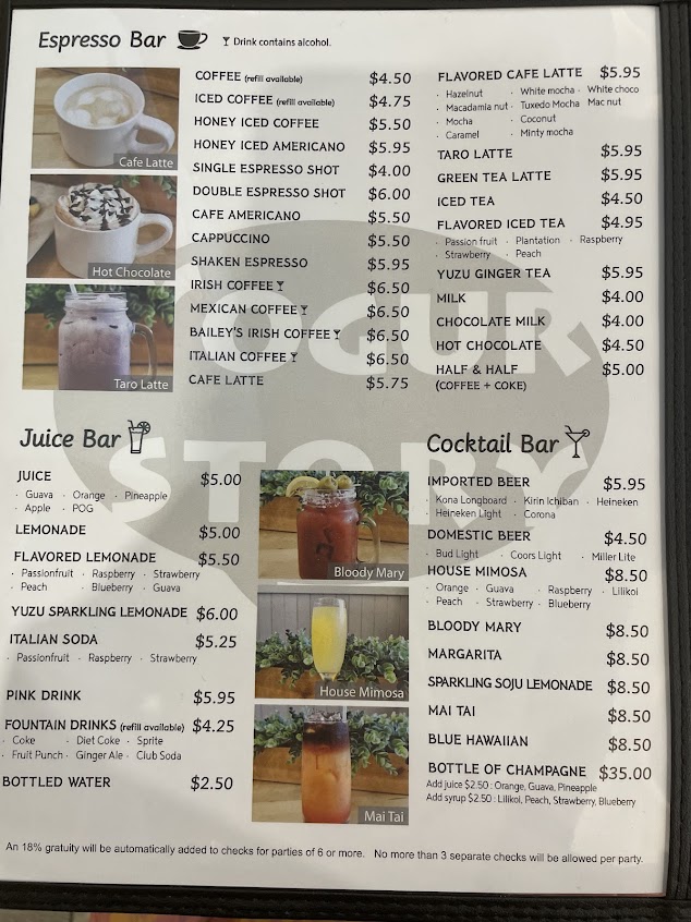 Lots of delicious choices on the menu! Twas my first time here but if I was in Oahu longer I'd definitely return to try other things on the menu. Everything was flavorful to both the people and the camera. Portions were larger than they looked on yelp photos. Service was quick, attentive, and excellent. The interior was clean and spacious (my friend who came here a couple years ago feels they just renovated). Pro tip: I got the tuxedo mocha & opted for a refill of black coffee.